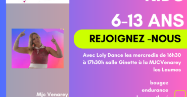 Pour les enfants de 6 à 13 ans mercredis en période scolaire de 16h30 à 17h30 à la MJC avec Loly Dance Tarif 141€/an adhésion incluse ou 47€/trimestre +12€ adhésion bulletin inscriptionrib